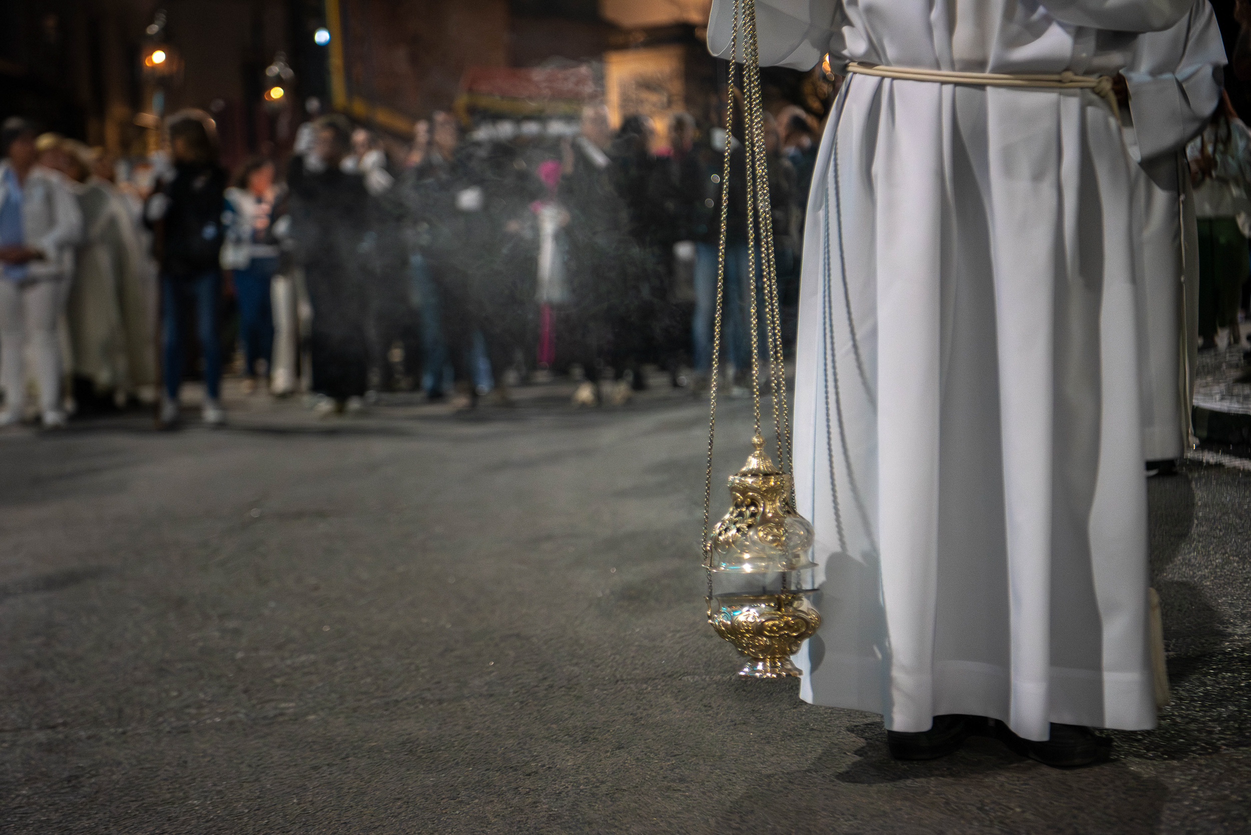 Alguns metros desviada, a iniciar as alas os balandraus com tochas, a cruz com o lençol pendurado. A seguir seguem a cruz, carregada pelos jovens das paróquias da cidade de Faro, concretamente de São Pedro (matriz e comunidade de São Paulo do Patacão), Sé, São Luís e Montenegro, e os martírios (coroa de espinhos e chicote), levados pelas crianças das catequeses daquelas paróquias. Entre as alas, o “tumbinho” carregando o corpo de Cristo, debaixo do pálio, transportados por elementos do Moto Clube de Faro e das paróquias da cidade.