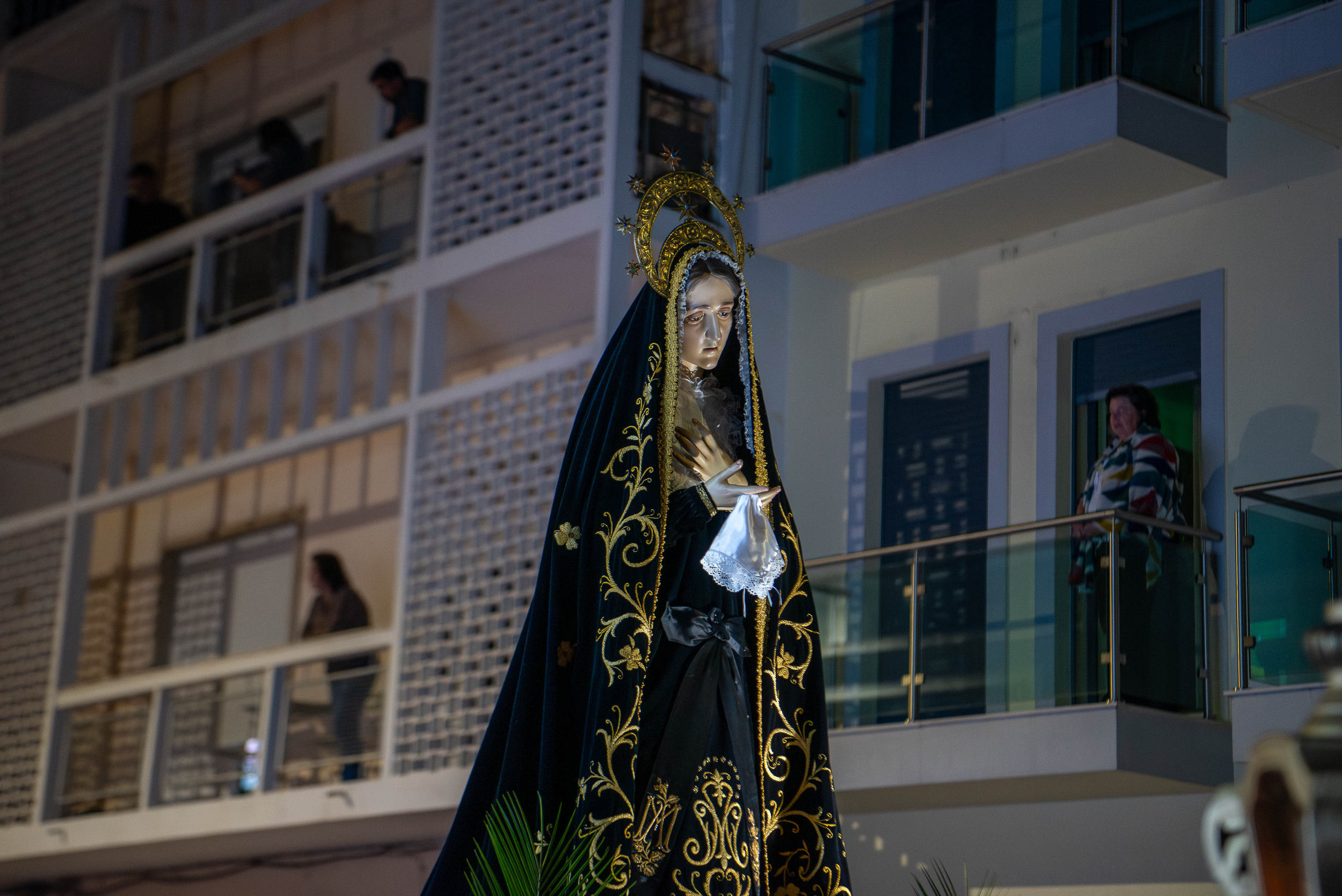 No meio, seguem os três andores, comportando as imagens de Nossa Senhora da Soledade, o apóstolo João e Maria Madalena, os três que permaneceram junto à cruz. As atuais imagens substituíram em 1942 as antigas que foram colocadas na exposição de arte sacra da Misericórdia, patente no espaço da sacristia da igreja.