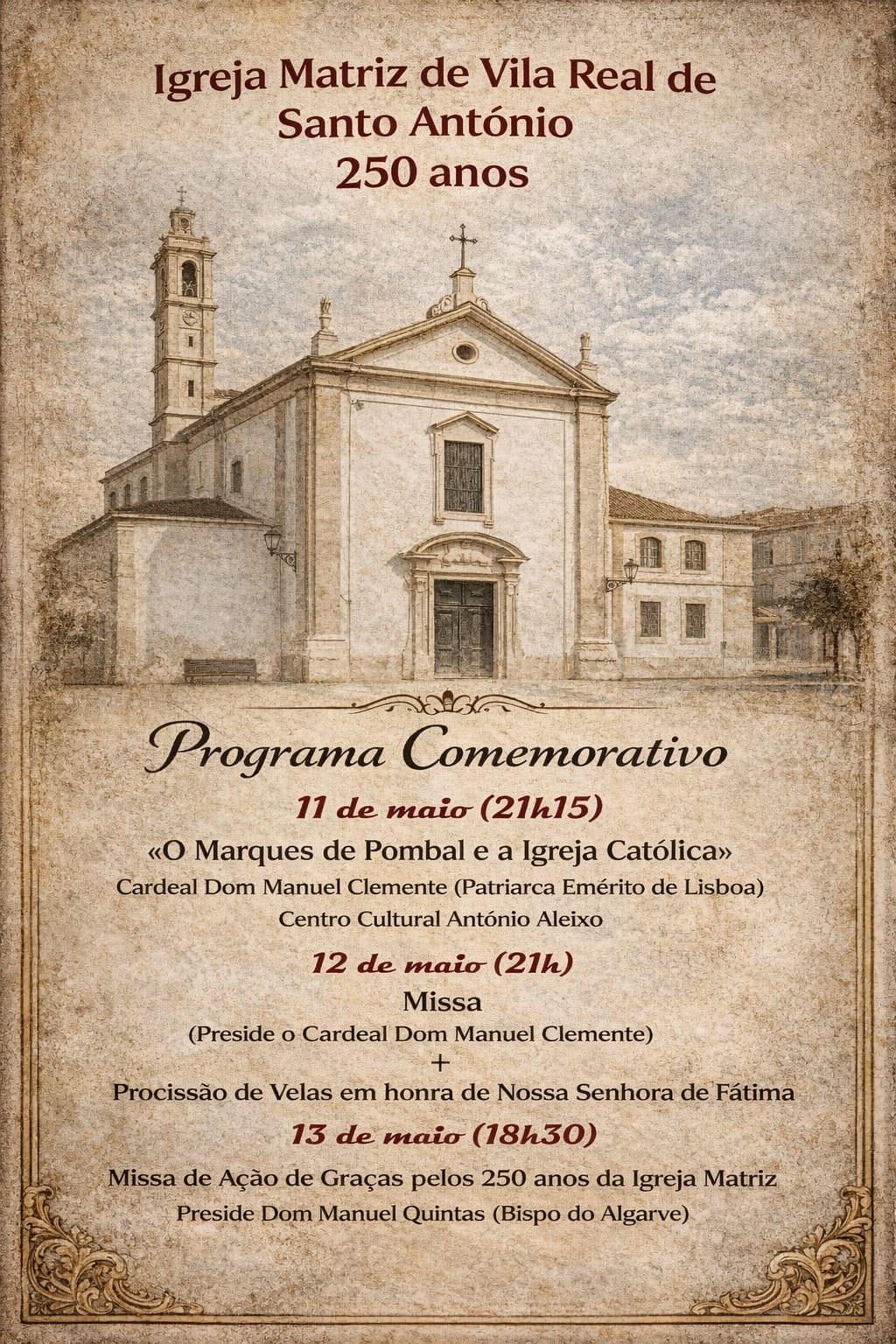 No seguinte, 13 de maio, à Missa de Ação de Graças pelos 250 anos da igreja matriz será presidida pelo bispo do Algarve, D. Manuel Quintas, pelas 18h30.