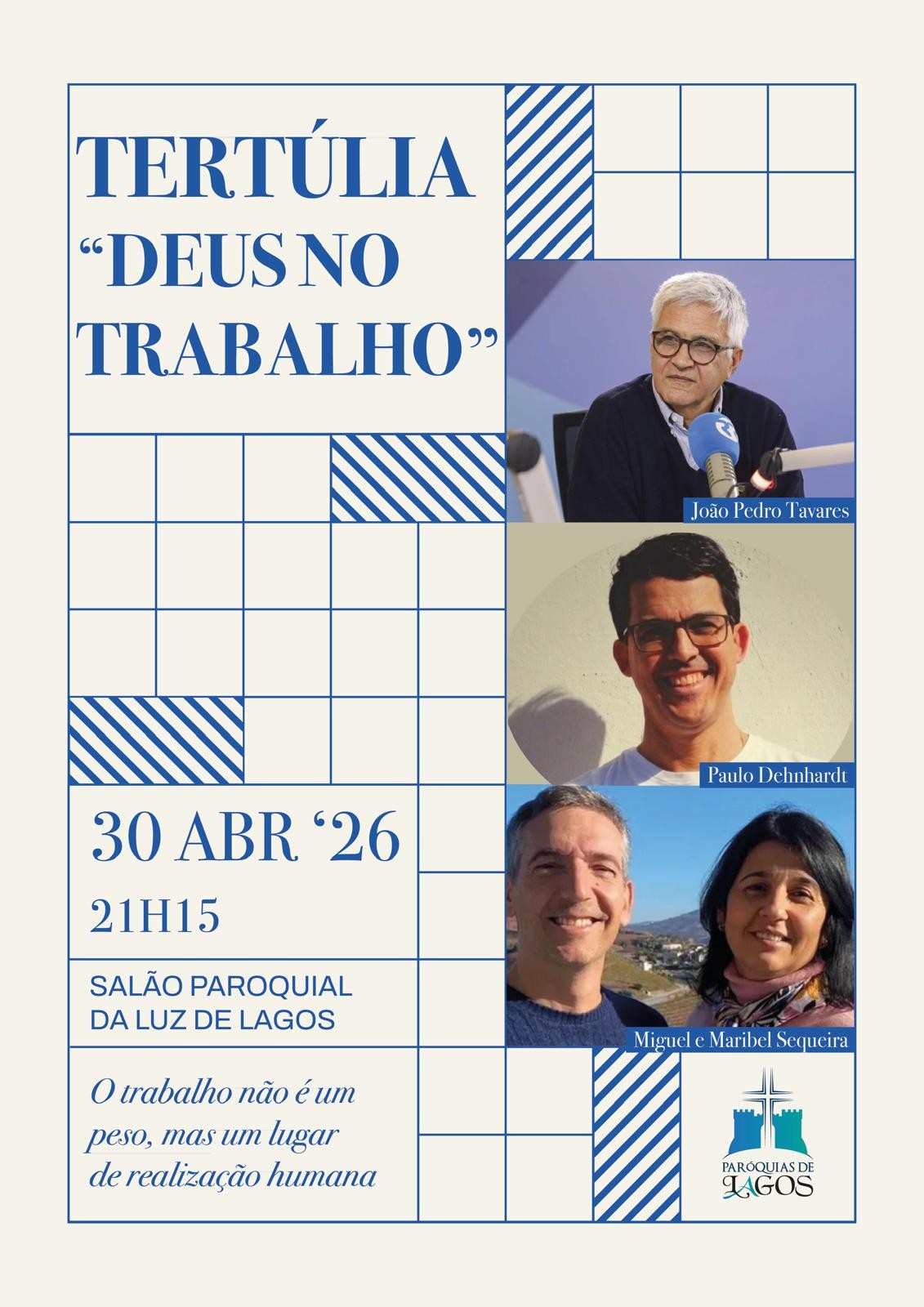 As paróquias de Lagos promovem no próximo dia 30 deste mês uma tertúlia sobre a temática “Deus no Trabalho”.
