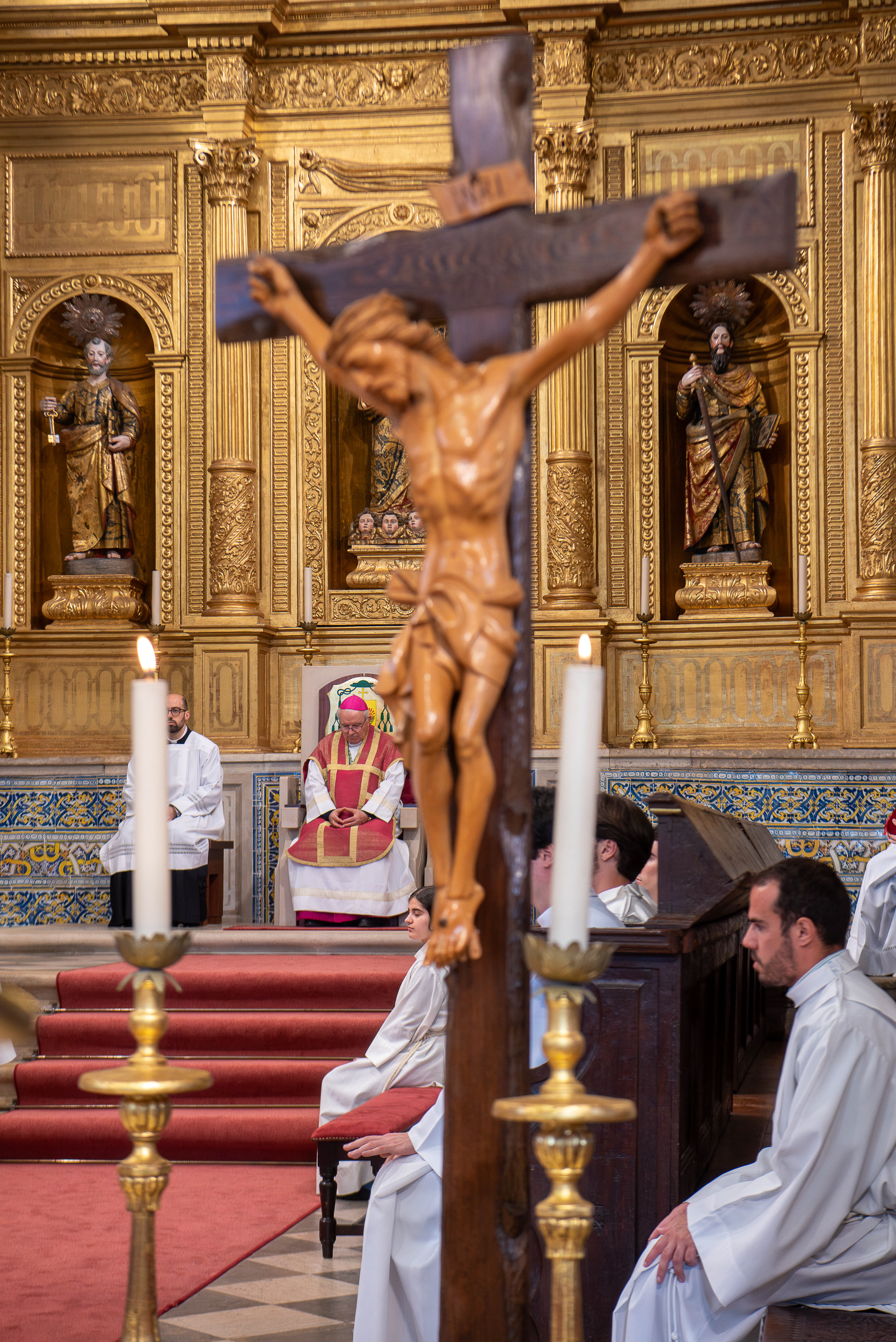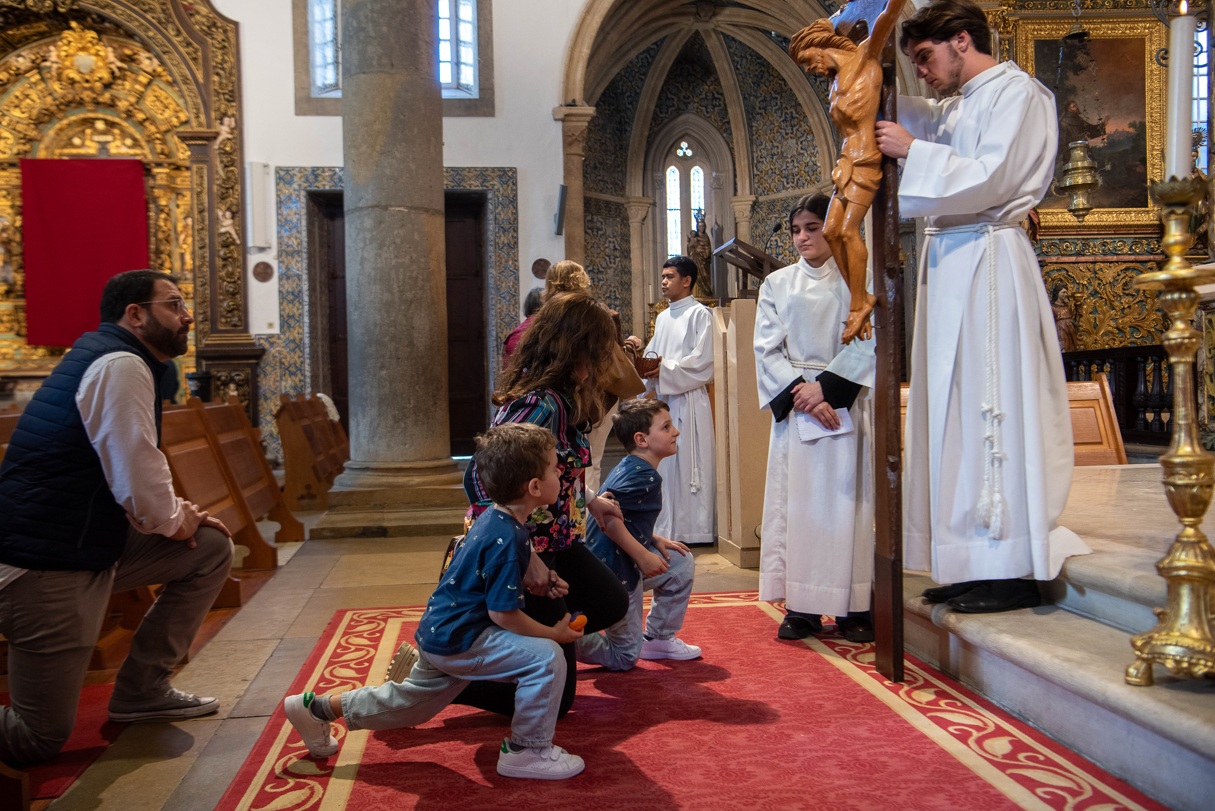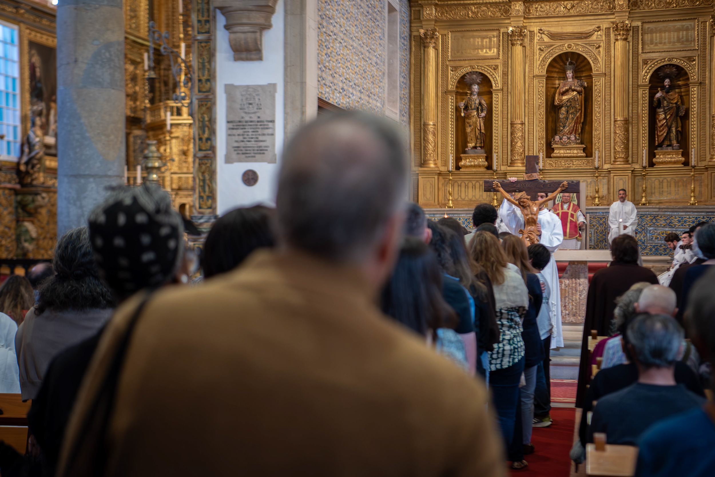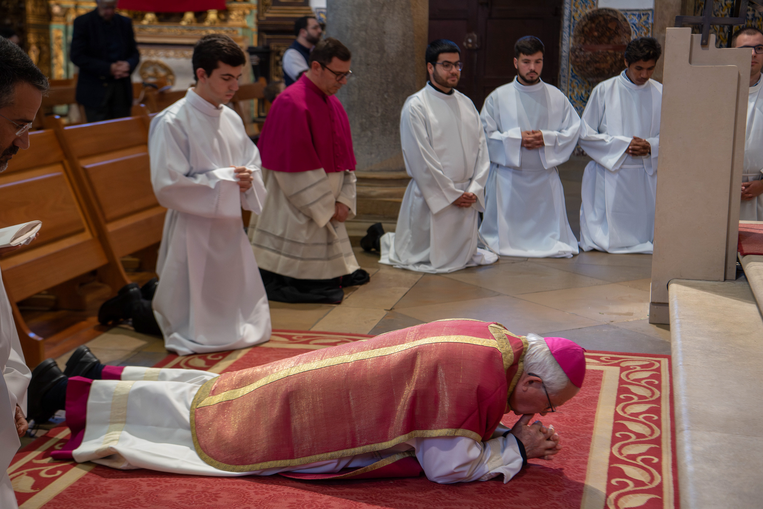Na catedral de Faro, a celebração da Paixão do Senhor iniciou-se, como acontece em todo o mundo, em silêncio, com o bispo do Algarve — paramentado com a cor vermelha que a liturgia católica associa aos mártires — a prostrar-se diante do altar descoberto, e terminou também em silêncio.